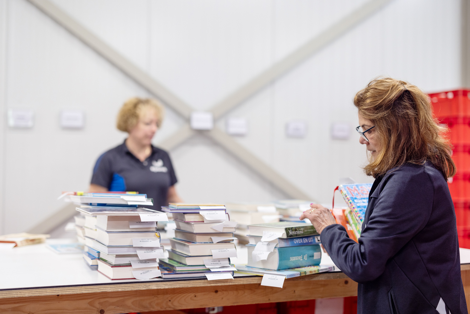 Waar chauffeurs vroeger per school misschien een half kratje meenamen, staan er nu regelmatig drie tot vijf volle kratten klaar. ‘We zien een stijging in het aantal boeken dat retour gaat naar de bibliotheek en in het aantal boeken dat aangevraagd wordt door het stijgende aantal scholen,’ legt Daan uit. Dat betekent meer tillen, meer uitladen en vooral meer sorteerwerk onderweg.