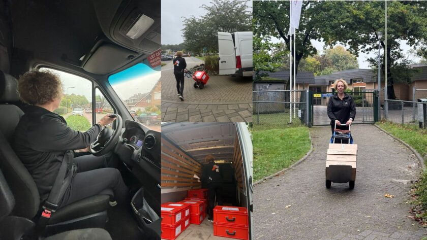 ‘Gelukkig ging collega Hugo gezellig met me mee. Om half 9 reden we richting Putten om kratten met boeken op te halen. Die moesten we bezorgen bij scholen en kinderdagverblijven in Harderwijk en Ermelo. Als laatste reden we naar Nunspeet voor een paar dozen die weer terug moesten naar Ermelo. Een leuk tochtje! Tegen kwart over 2 waren we weer terug bij Rijnbrink.’