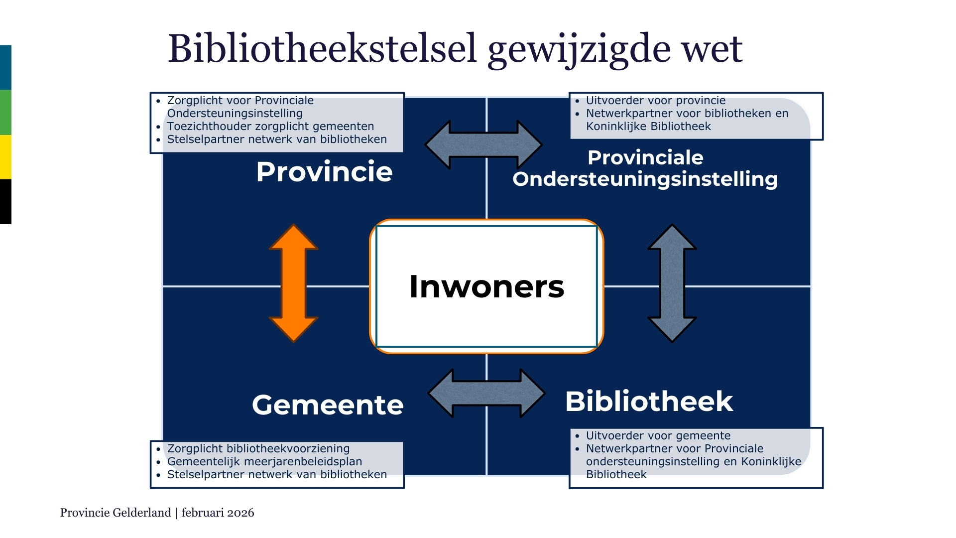 Op deze pagina lees je informatie specifiek over het Gelders bibliotheekstelsel en de actuele stand van zaken. Daarnaast staan in het menu rechts handige documenten en links naar relevante websites.